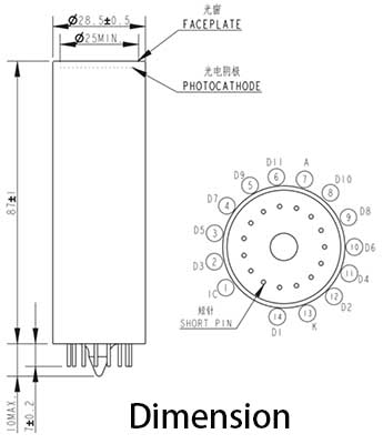 Spectral Range:290-650 nm ; Peak QE:380 nm ;Gain:Typ:5*10^5(@25℃) ; Dark Current:Typ:0.1(@25℃) /Max:10(@25℃)/Max:1000(@175℃)nA