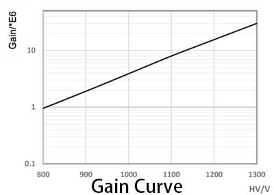 Spectral Range:290-650 nm ; Peak QE:380 nm ;Gain:Typ:5*10^5(@25℃) ; Dark Current:Typ:0.1(@25℃) /Max:10(@25℃)/Max:1000(@175℃)nA