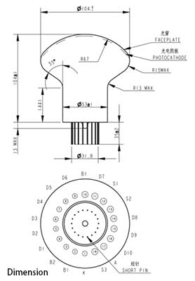Spectral Range:290-650 nm ; Peak QE:380 nm ; Anode Sensitivity:Min:300/Typ:800 ;Dark Current:10nA