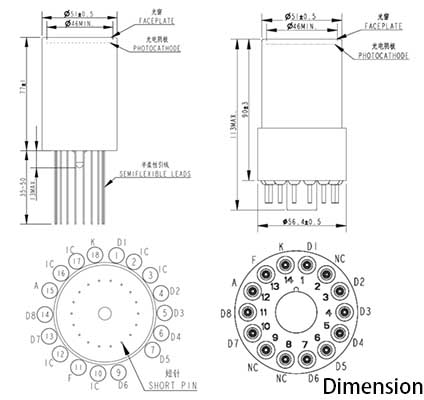 Spectral Range:290-650 nm ; Peak QE:380 nm ;Gain:Typ:5*10^5(@25℃) ; Dark Current:Typ:0.1(@25℃) /Max:10(@25℃)/Max:1000(@175℃)nA