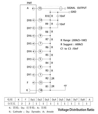 Spectral Range:290-650 nm ; Peak QE:380 nm ;Gain:Typ:1*10^7 ; Dark Current :Max:100nA