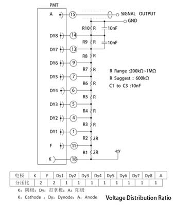 Spectral Range:290-650 nm ; Peak QE:380 nm ;Gain:Typ:2.5*10^7 ; Dark Current :Max:30nA