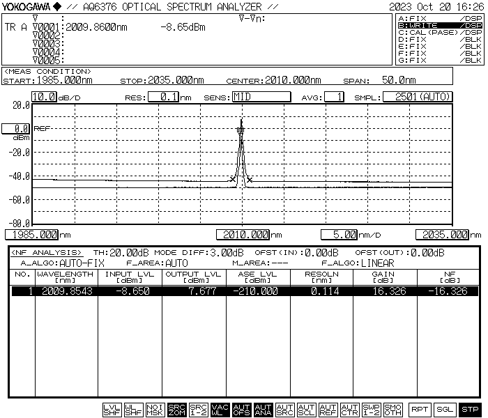 Thulium-doped Fiber Amplifier, wavelength range 1920~2020 nm, input power -10~10dBm, saturation output power 30dBm@0dBm in put, fiber SMF-1950, operating mode ACC/APC