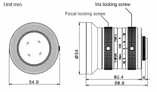 STPM-12LC8M, Resolution 8 MP,Focal Length 12 mm,Corresponding Wavelength 420-1000nm,lris Range F2.0-C,Max.Sensor Size 1"(16mm)