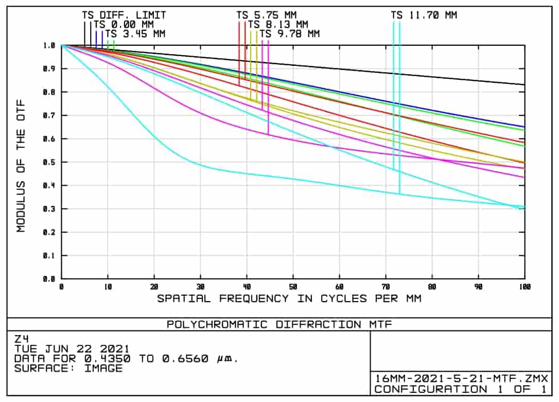 Distortion (mm) 4/3" -2.05%@y=11.5  -1.93%@y=11.5  -0.64%@y=11.5  -0.52%@y=11.5  -0.13%@y=11.5