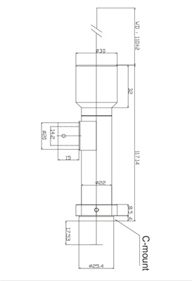 STPMS-03HT110-C,High Resolution Telecentric Lens 0.3X, Max. sensor size 2/3",Resolution 11.18μm,Working Distance 110 mm