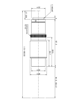 STPMS-02HT180,High Resolution Telecentric Lens 0.2X, Max. sensor size 1",Resolution 20.14 μm,Working Distance 180 mm