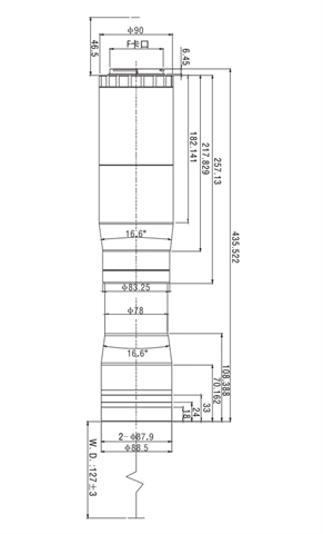 STPMS-017TF416,F-mount telecentric lens 0.17X, Max. sensor size 35mm Film,Resolution 31.56 μm,Working Distance 416 mm