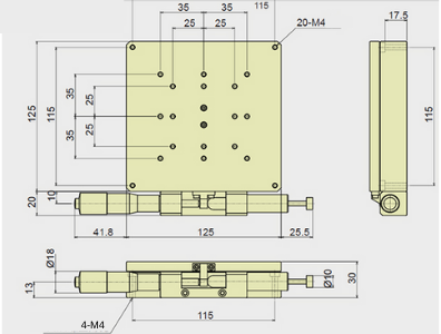 Top: M4, M3 Bottom:Counterbore holes for M4 Cap screws