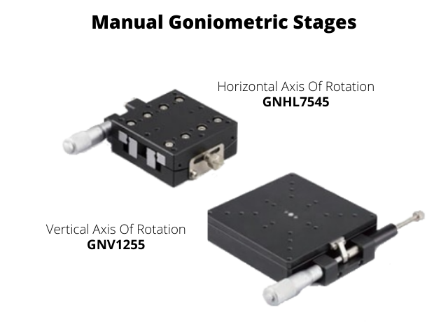 Goniometer, Vertical Axis of Rotation, Platform dimensions=100x100mm, Minimum reading=45 arcsec