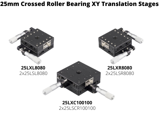 25mm Crossed Roller Bearing XY Linear Stage, Platforms dimensions=80mmx80mm, Left Side Drive
