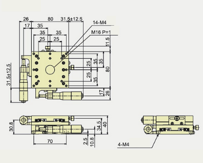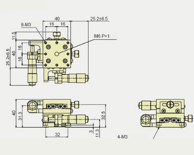 25mm Crossed Roller Bearing XY Linear Stage, Platforms dimensions=80mmx80mm, Right Side Drive