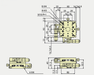 60x60 | Top: M3, M4, M16 Bottom: Counterbore holes for M4 Cap Screws | Right | 49 |