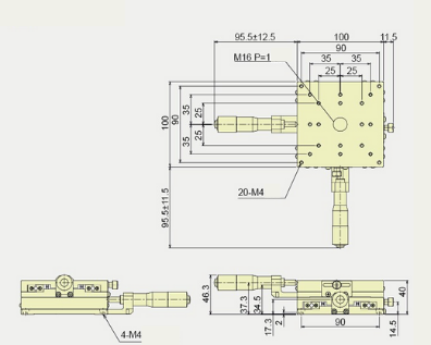 100x100 | Top: M4, M16 Bottom: Counterbore holes for M4 cap screws | Center | 147 |