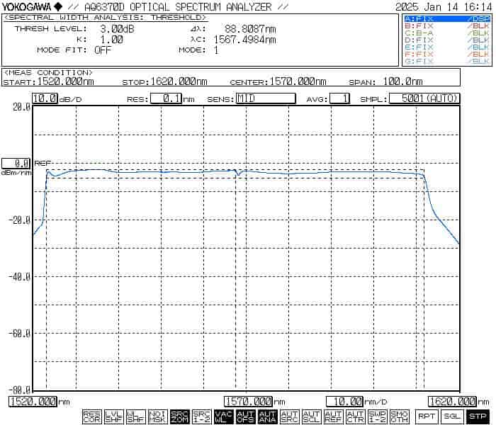 C+L-Band Broadband ASE Light Source (1528-1603nm), wavelength range 1528-1603nm, output power 20mW