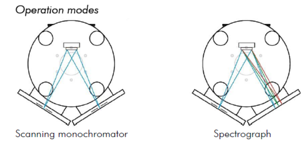 is then dispersed and imaged onto the detector. In contrast to that the H+P spectrographs can be configured to directly image a radiation source positioned at any