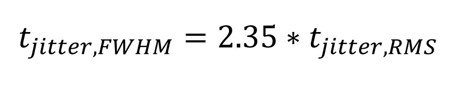 4)SPAD time jitter: The output jitter of the avalanche signal relative to the optical pulse synchronization signal can be measured in the gated mode. This parameter represents the fluctuation of the SPAD single-photon avalanche relaxation time. Usually, a time-correlated single-photon counter is used to count the effective avalanche signal. FWHM of time histogram 𝑡𝑗𝑖𝑡𝑡𝑒𝑟,𝐹𝑊𝐻𝑀, or use a high bandwidth oscilloscope to count effective snow 𝑡𝑗𝑖𝑡𝑡𝑒𝑟,𝑅𝑀𝑆 of the time offset of the avalanche signal relative to the optical pulse synchronization signal . For the time jitter of the nearly Gaussian distribution, there are generally: