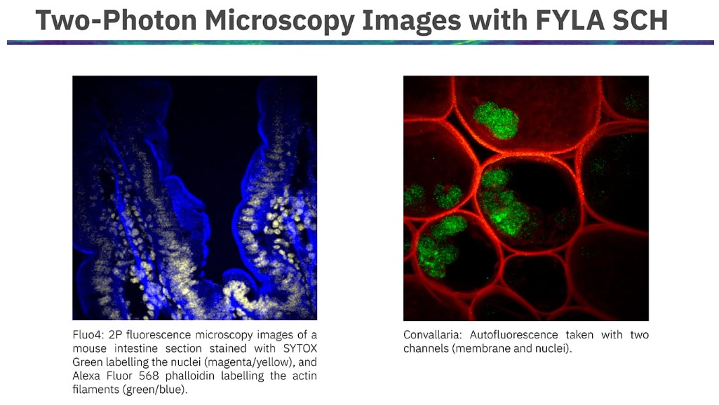 Images of a mouse intestine and a convallaria illustrate the great image quality that can be achieved when illuminating these samples with the broad bandwidth of the Cyclone laser.