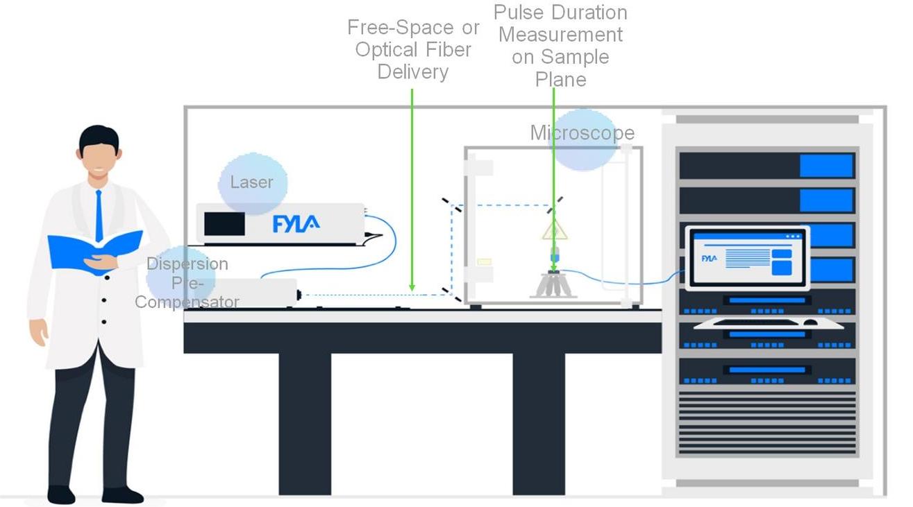 To simultaneously excite a larger variety of fluorophores with a single laser, lasers with broader bandwidths and shorter pulse durations are required.