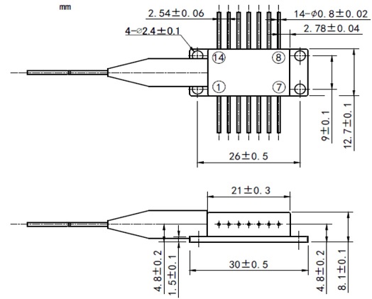 CW Pigtailed Laser Diode Multi-Mode(700-1920nm), Wavelength 830nm, output power 2W, package 14pin, with TE cooler and Photodiode