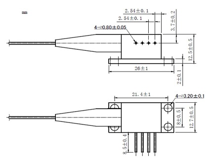 CW Pigtailed Laser Diode Multi-Mode(700-1920nm), Wavelength 1064nm, output power 8W, package 2pin
