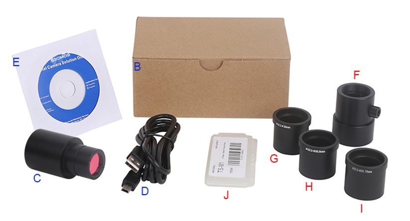 Eyepiece USB3.0 CMOS Camera, Sensor 5.1Mega pixel, Color mode Polychromatic, FPS 20@2592x1944, Exposure 0.1~2000ms