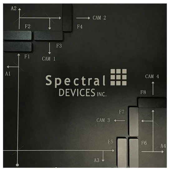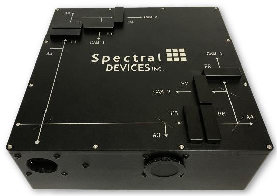 Multispectral Camera For Microscope, Number of Bands 4, Band Locations Interchangeable Filters, Pixels/Band 2464 × 2056, Pixel Size (µm) 3.45 x 3.45, Sensor size 2/3-inch, Sensor Type Global Shutter(Four Sony IMX250 Monochrome Imaging Sensors), Max. Frame Rate 75 FPS, Illumination Front-illuminated, Camera Options Mono/Color