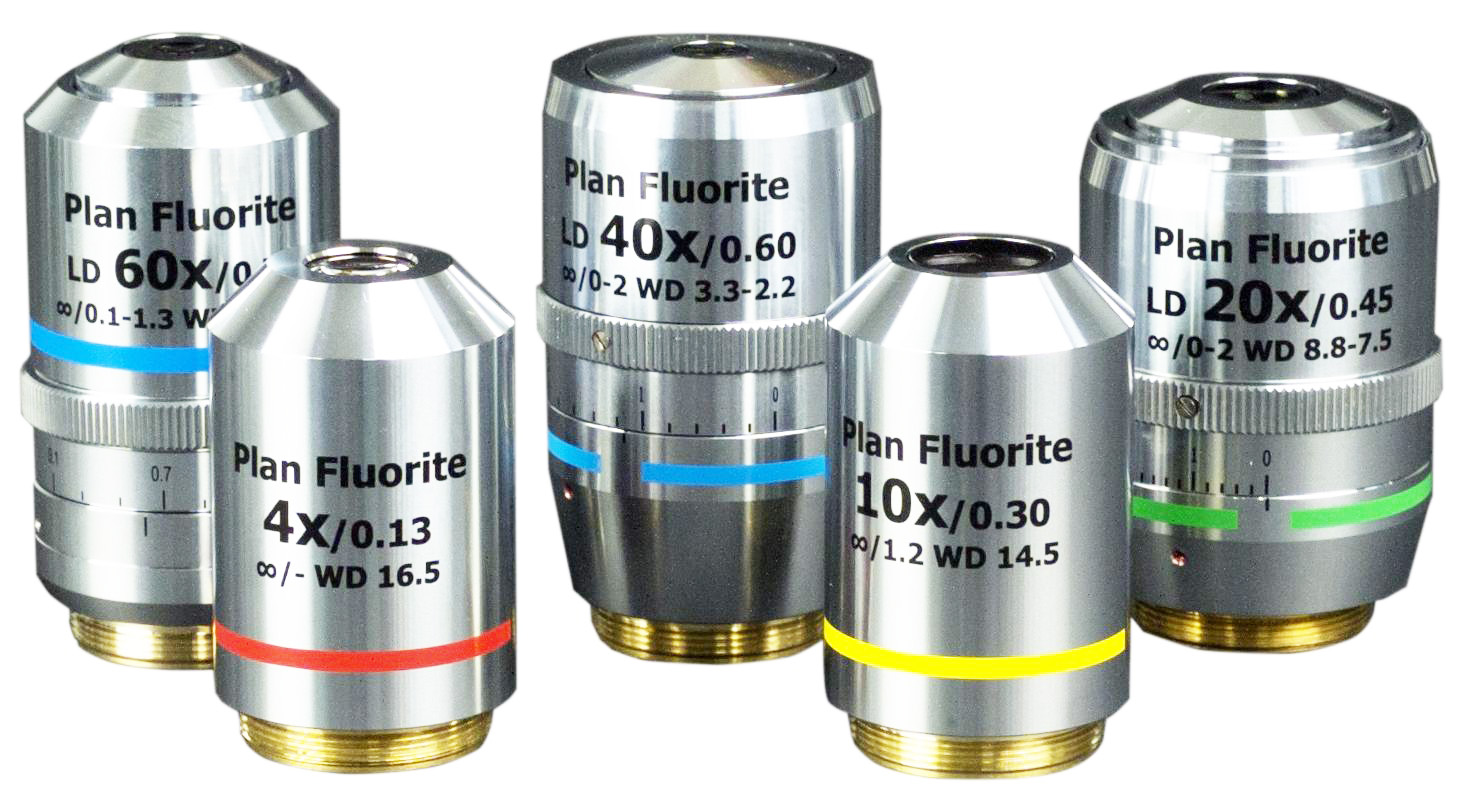 Plan Fluorite Objective 40X, Optical System Characteristics Infinite Correction, Observation Method Bright Filed / Fluorescence, Level of Chromatic Aberration Correction Semi-apochromatism, Focal Length 5MM, Numerical Aperture 0.6, Working Distance2.3-3.3MM, Cover Glass Thickness 0-2MM