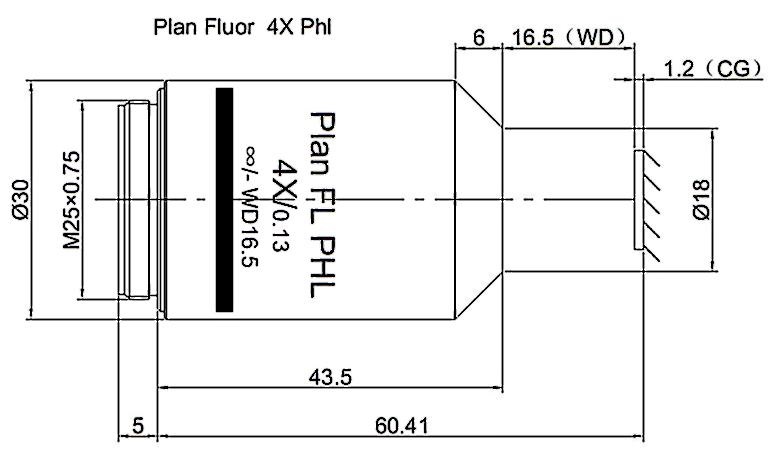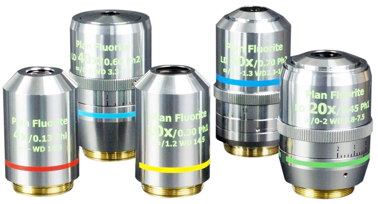 Plan Fluorite Objective Phase-contrast 4X, Optical System Characteristics Infinite Correction, Observation Method Bright Field / Dark Field / Fluorescence, Level of Chromatic Aberration Correction Semi-apochromatism, Focal Length 50MM, Numerical Aperture 0.13, Working Distance 16.5MM