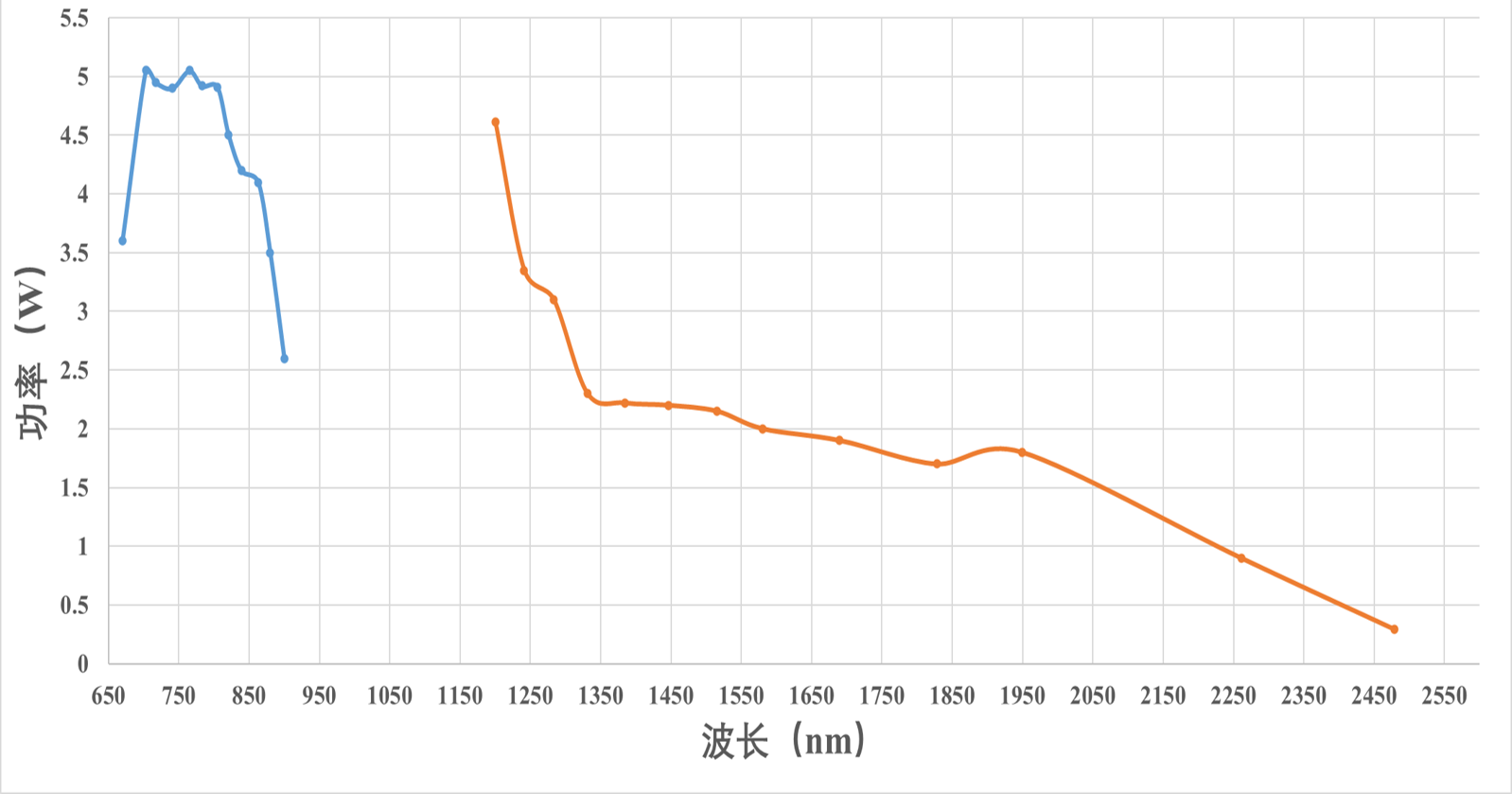 OPA Output Power @1MHz (Output power in the 850-900nm and 1200-1300nm wavelength ranges is for reference only.)