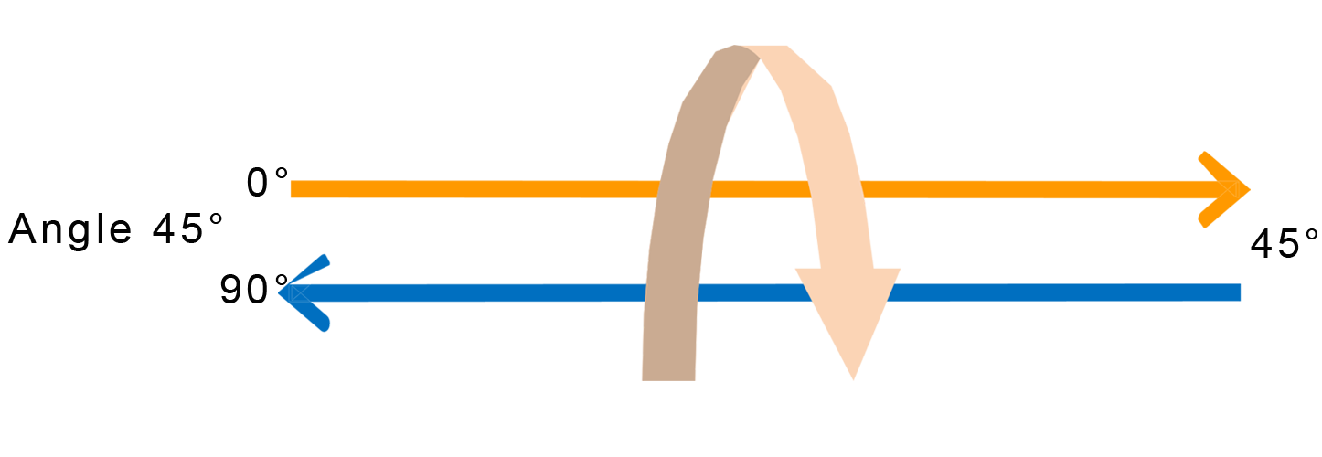 1=45°, 2=90°