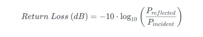 Return Loss is usually expressed in decibels (dB) and can be calculated using the formula: