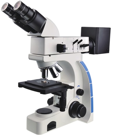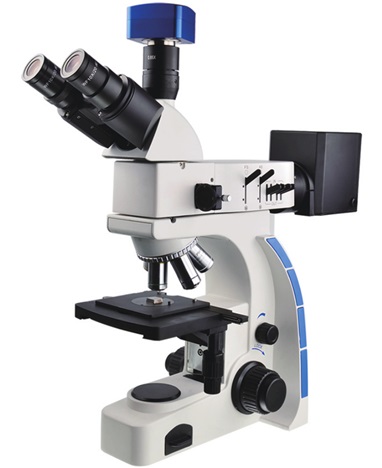 Transflective Metallographic Microscope, UCIS optical system for sharp imaging, Infinity long distance plan objective lens (mildew-proof), 10X, 20X, 50X, 80X, High eye point plan eyepiece 10X/Φ20mm, flat field reticle eyepiece 10X/Φ20mm, anti-mildew function, Hinged trinocular observation head, interpupillary distance 52~75mm, 30° tilt, 360° rotation, adjustable diopter