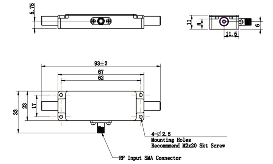 Fiber Coupled Acousto-Optic Modulators (AOM), Wavelength 1940 nm, Operating Frequency 100 MHz, Fiber Type Double-clad 10/130, NA0.14+0.01, Rise time ≤50 ns, Insertion Loss ≤2.5dB, Optional RF driver