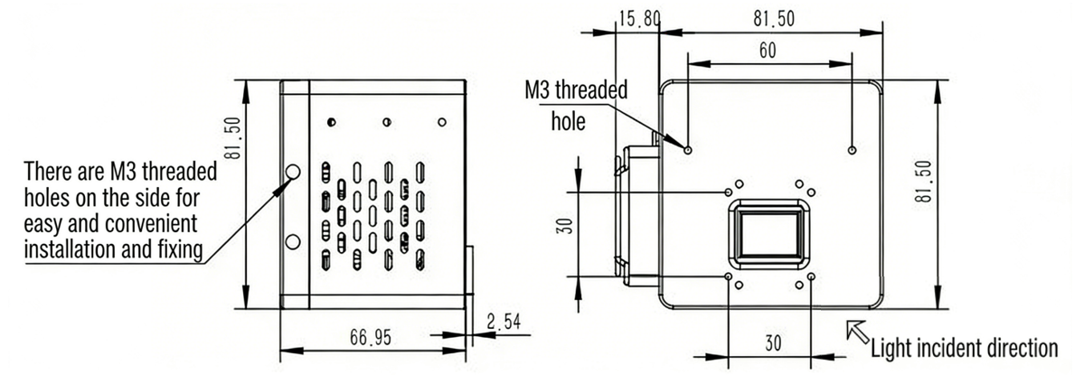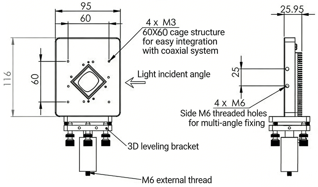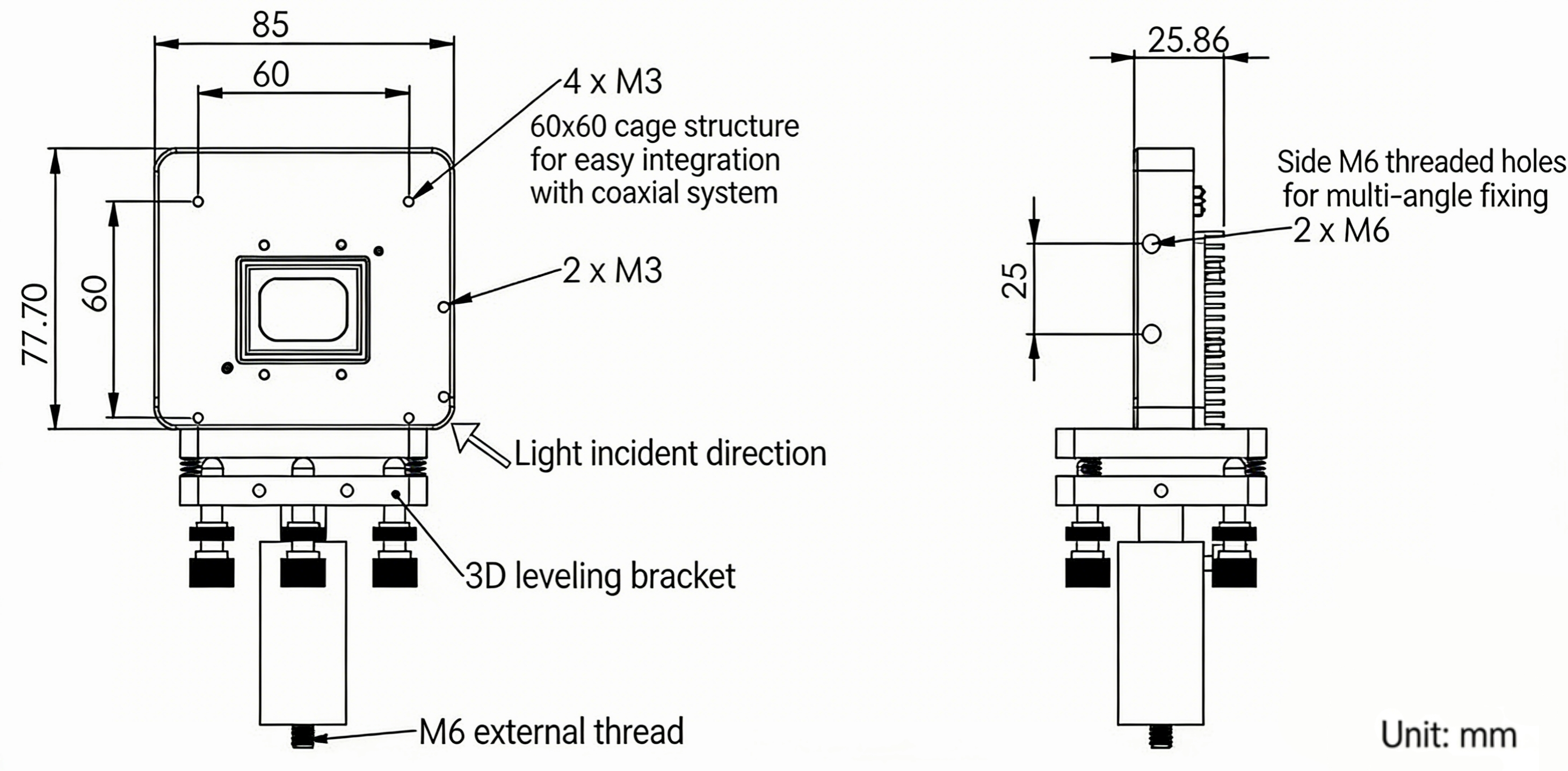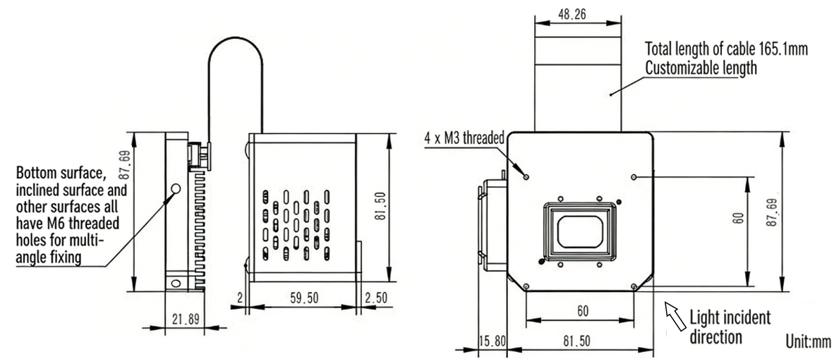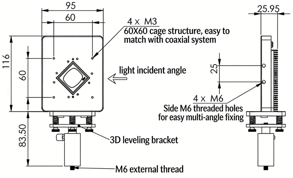 Wavelength Range: "MIR: 3-5 μm", Physical Resolution: "2560×1600", Target Size: "0.9 inch", Storage Capacity: "5T", Micromirror Size: "7.56 μm", Buffer Frame Rate: "1bit: 11764 Hz; 8bit: 522.19 Hz", Deflection Angle: "±12°", Fill Factor: "0.92", Damage Threshold: ">20W/cm²", Gray level: "1-16bit", Mounting type: "0°/Default 45°", Sync trigger interface: "Support", PC interface: "Gigabit Ethernet / USB 3.0 / 10 Gigabit Ethernet", Flex cable length: "31cm", Control software: "HC_DMD_Control", Operating system: "windows/linux", SDK support: "C++/python/labview/matlab/C#"