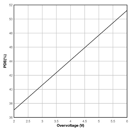 Spectral range:300-950nm;peak wavelength:420nm;dark voltage:2mV;active area:3*3mm;microcell size:50μm; PDE:47%;No. of microcells:2668;Gain:6*10^6