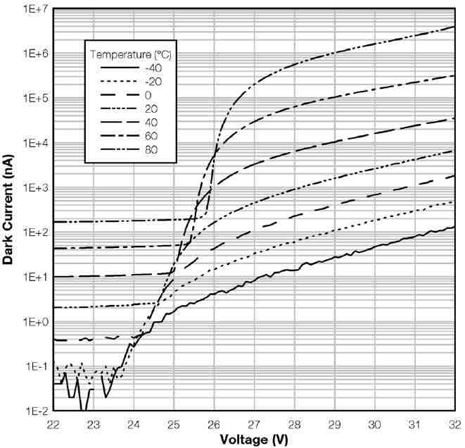 Spectral range:300-950nm;peak wavelength:420nm;dark voltage:2mV;active area:1*1mm;microcell size:20μm; PDE:31%;No. of microcells:1296;Gain:1*10^6