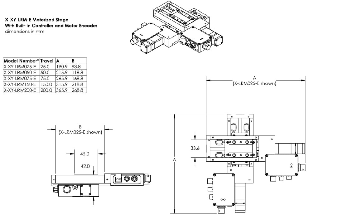 OM-ZA01-XY-LRQxP0150,travel 150mm, Accuracy 25µm,Maximum Load Capacity 100KG, Default Resolution 0.496µm