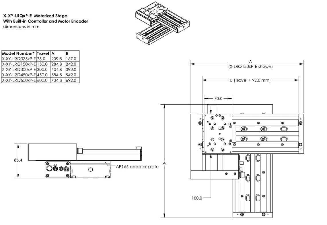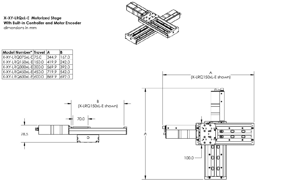 OM-ZA01-XY-LRQxL0150,travel 150mm, Accuracy 25µm,Maximum Load Capacity 100KG, Default Resolution 0.496µm