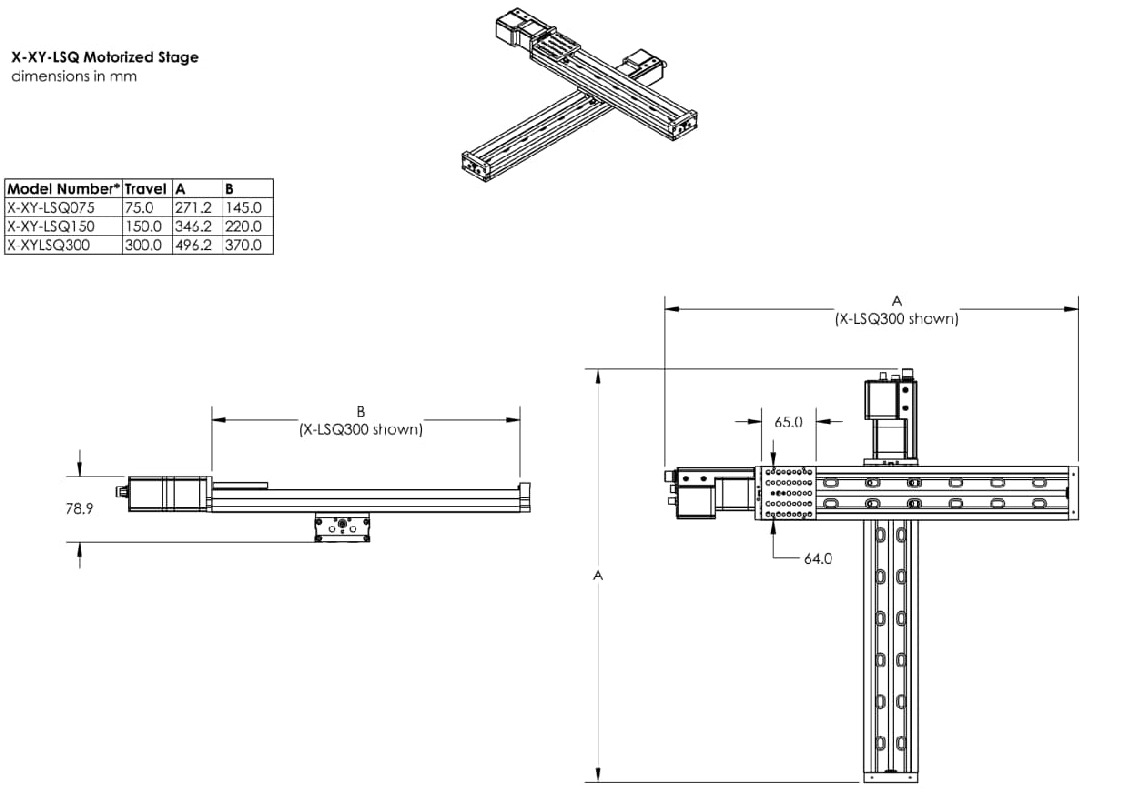 OM-ZA01-XY-LRQxP0300,travel 300mm, Accuracy 35µm,Maximum Load Capacity 100KG, Default Resolution 0.496µm