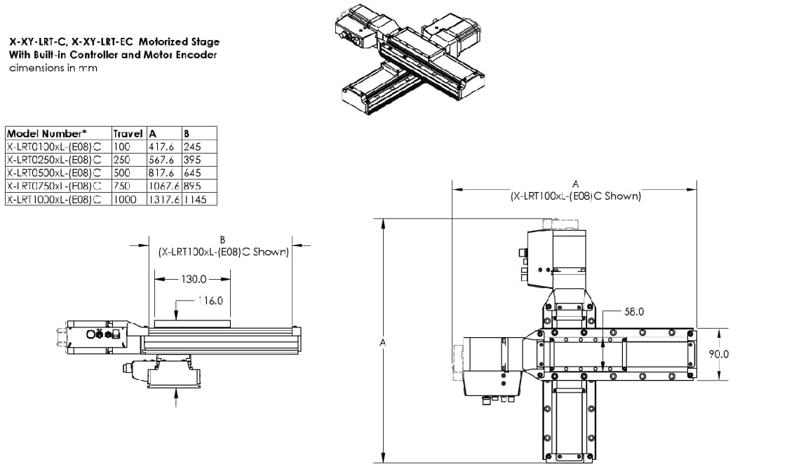 OM-ZA01-XY-LRQxP0600,travel 600mm, Accuracy 90µm,Maximum Load Capacity 100KG, Default Resolution 0.496µm
