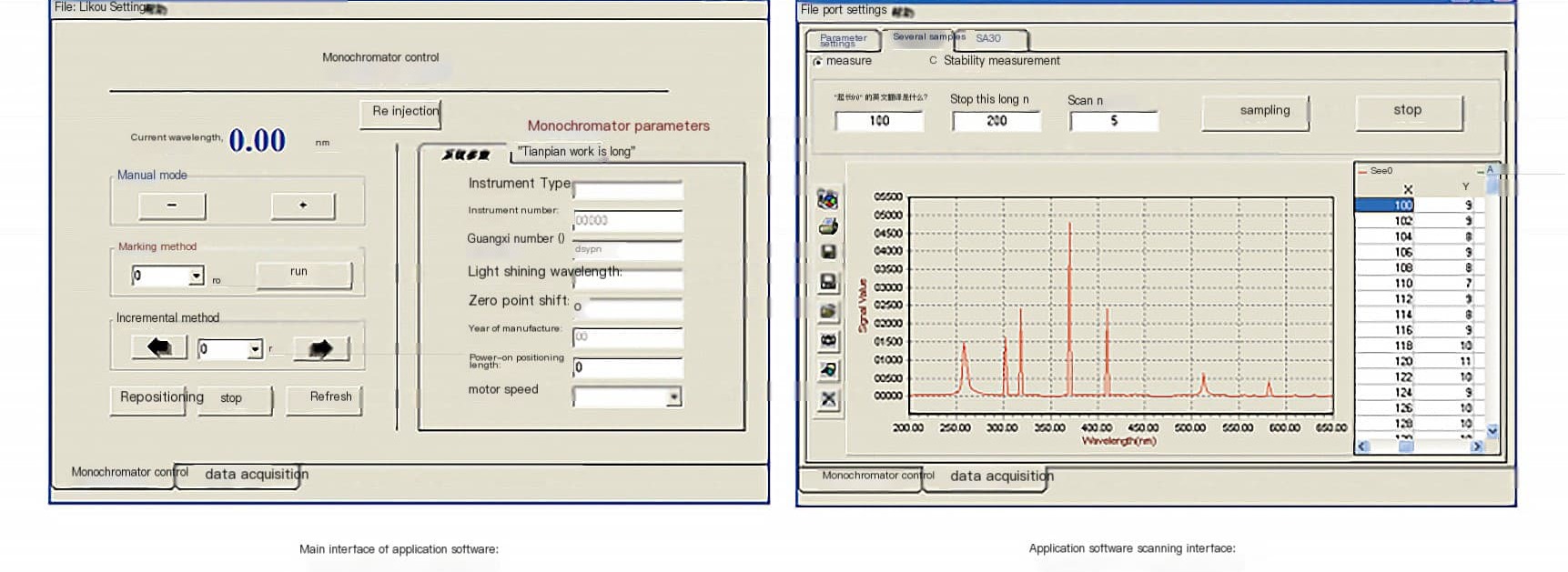 Parallel inlet and outlet,Motor,Focal length 100mm,F/# F/3,Stray Light 5×10⁻⁴,Slit Height 5mm,Slit Width 300μm,Standrad Grating 1200g/mm,λ=500nm,(Refer to grating model table for other optional grating models)