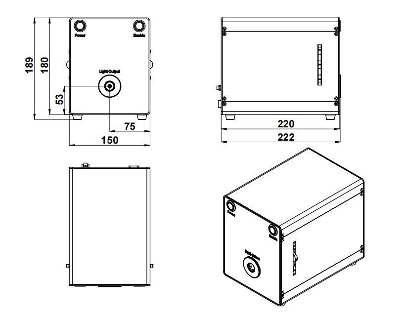Wavelength: 360-660 nm (360/385, 470, 550,630 nm) ;Output Power: Multiple Wavelength Output ≥3.5W; Optical Transmission: 3 mm diameter LLG; Operating Mode: Continuous Output, Default TTL Modulation (Analog Modulation Optional)