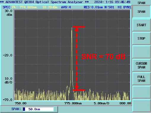 Center Wavelength: 765-795 nm (Customizable), Output Power: >500 mW (>1W optional) ,Output Laser Type: CW, Single Frequency, Single Longitudinal Mode Seed Source Linewidth@50km delay line: 1.5-2 kHz ,Power Stability: 1%-3% ,Output Fiber Type: Panda PM1550/ Free Space ,Size: 254*190*85 mm ,Weight: <5kg
