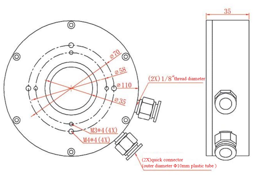 Spectral range:0.24-2.2um; Power range: 2W - 1000W; Detection aperture: 35mm; Maximum Average Power Density: 100kW/cm²,10W,CW Maximum Energy Density: 1.0J/cm²,1064nm, 1ns Specification: Φ110 × 35mm; Cooling water flow: 3.5 - 10L/min