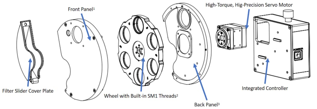 8-Position Motorized Filter Wheel, cage-mounted housing, accepts 25.4 mm filters (max. thickness: 6.35 mm)