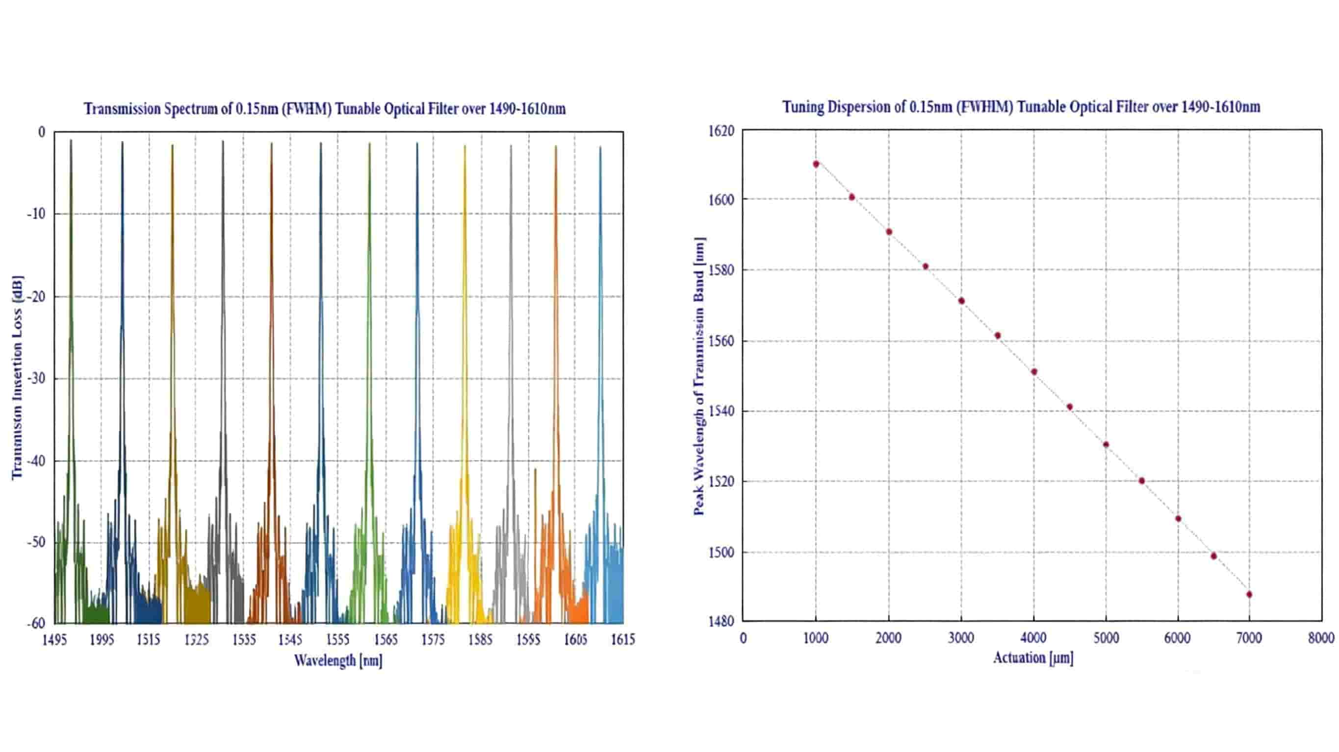 Electric Central Wavelength: 1550nm ,Tuning Range: 110nm ,Version type: P- version, Wavelength Resolution: 0.01nm ,FWHM Bandwidth: 0.5nm, Fibre Type: PM, Insertion Loss: 3.5dB max, Cable Length: 0.5m ,Connector Type: FC/APC