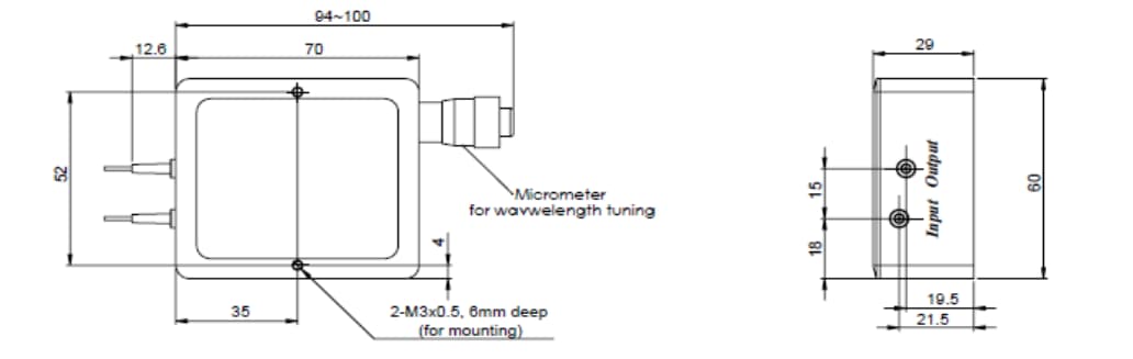 Electric Central Wavelength: 1060nm ,Tuning Range: 80nm, Version type: P- version ,Wavelength Resolution: 0.01nm ,FWHM Bandwidth: 0.5nm ,Fibre Type: PM, Insertion Loss: 3.5dB max, Cable Length: 0.5m, Connector Type: FC/APC