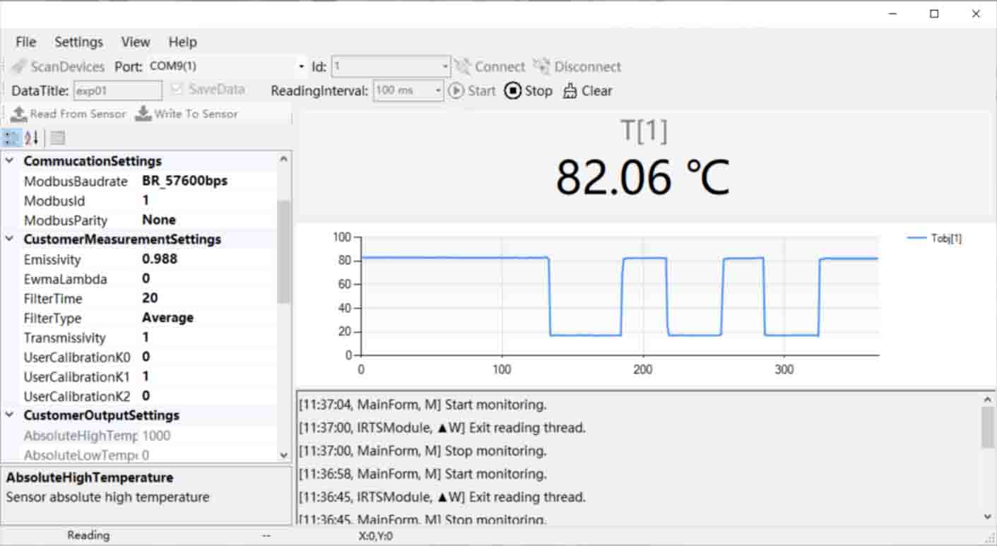 Temperature measurement range: -40~300℃. Output: RS485&4-20mA. 3-meter probe wire, 2-meter power cord