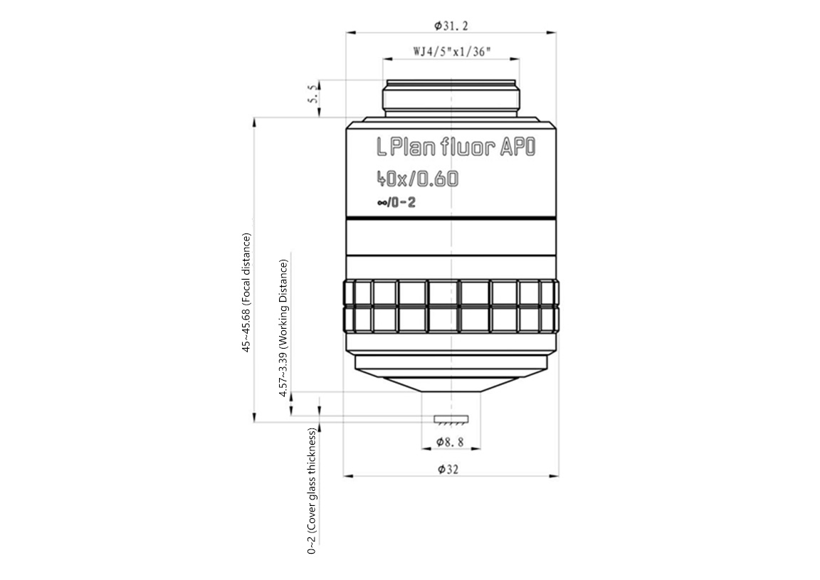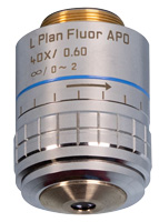 The resolution and depth of focus of the objectives are calculatedbased on a reference wavelength (λ=550nm)